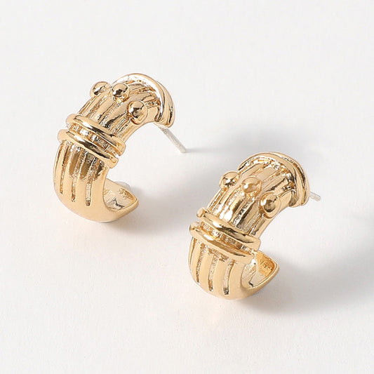 18K Gold Dipped Sterling Silver Post Textured Hoop Earrings