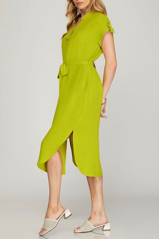 Drop Shoulder Waist Tie Side Pockets Woven Dress