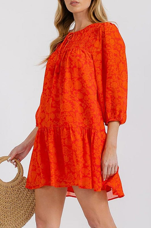Floral Print Surplice Tiered Smock Mini Dress