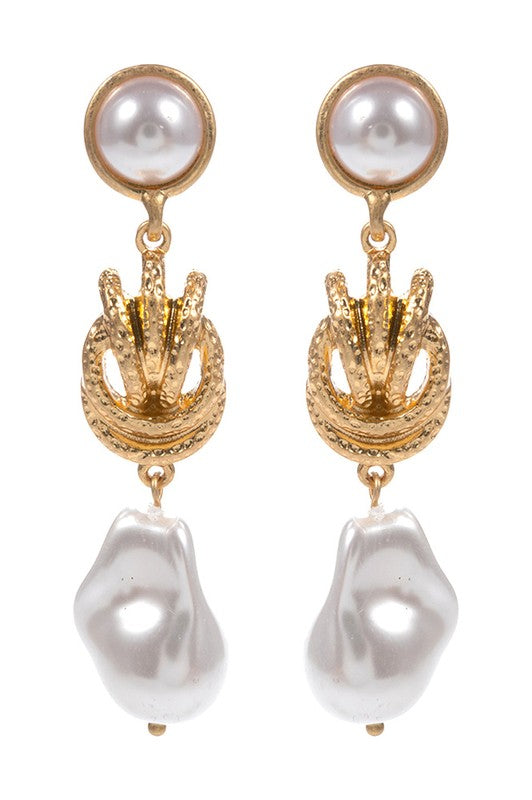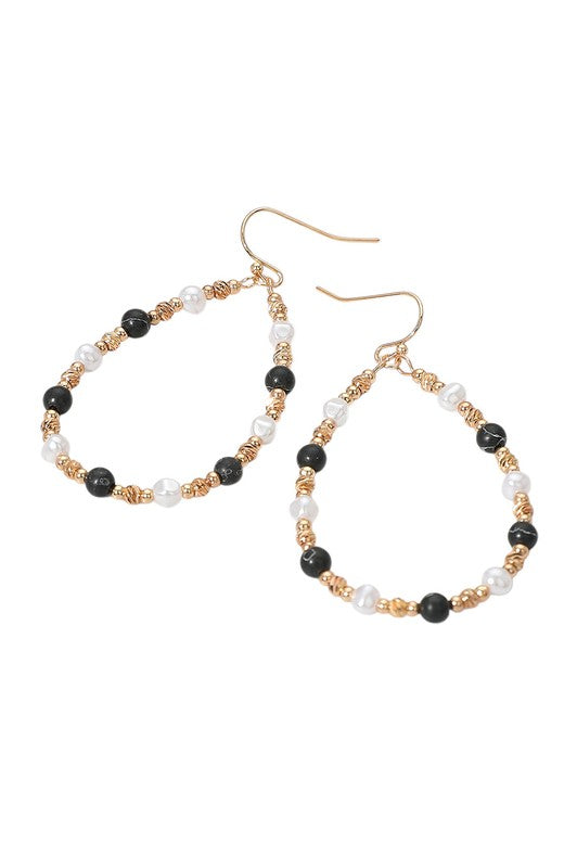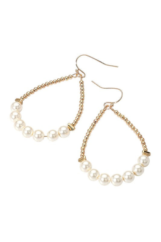 Pearl Metal Ball Beaded Teardrop Dangle Earrings