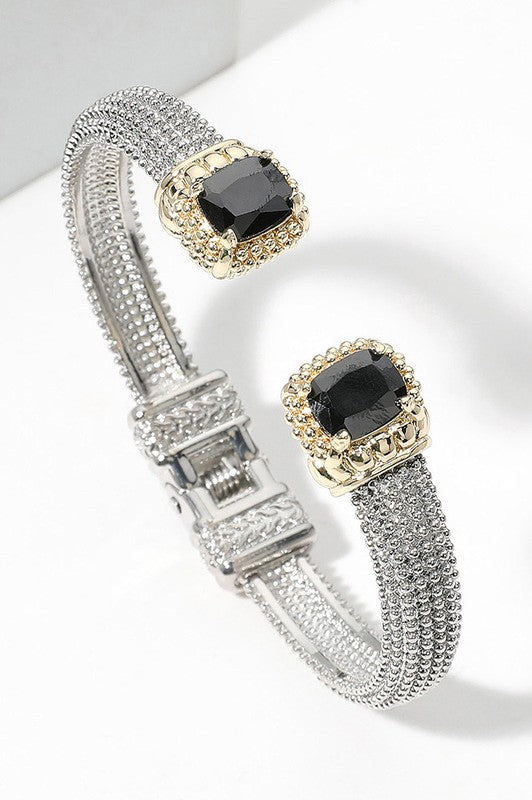 Rectangle Cz Stone Tip Hinged Cuff Bracelet