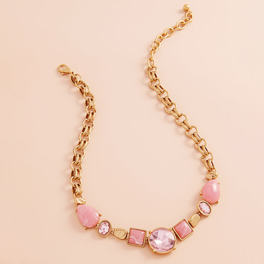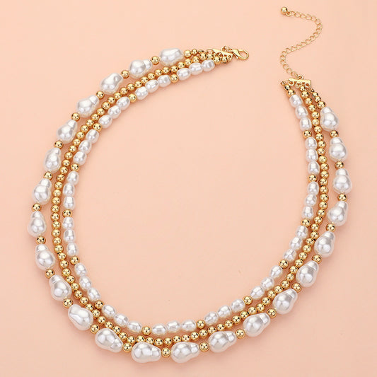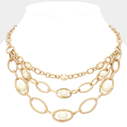 Pearl Pointed Open Oval Metal Link Layered Necklace