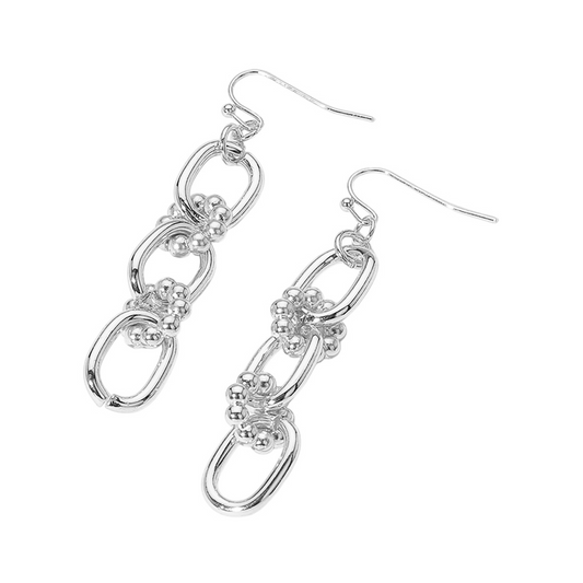 Textured Metal Beaded Hoop Oval Link Drop Earrings