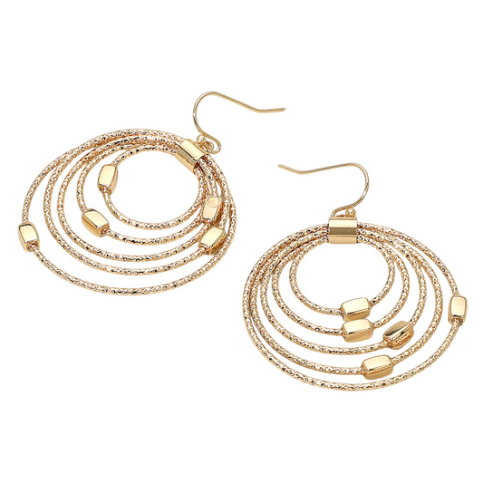 Textured Metal Multi Layered Hoop Dangle Earrings