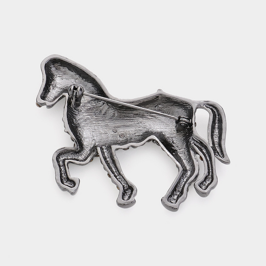 Rhinestone Paved Horse Pin Brooch