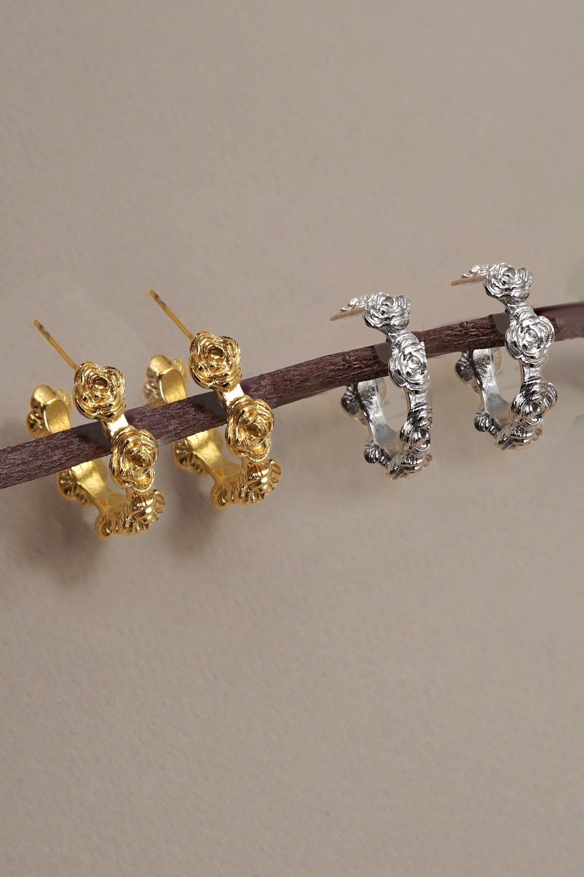 18K Stainless Steel Waterproof Tarnish-Free Floral Huggie Hoop Earrings, Made from high-quality stainless steel with a luxurious 18K gold finish, these earrings feature a stunning floral texture that adds depth and dimension to your look. Product Details: length: .85" width: .85" earring back: Stainless Steel Post metal finish: 18K Stainless Steel product: Lead & Nickel Compliant durability: tarnish free, non-tarnish
