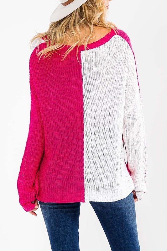 Wrap yourself in cozy charm with this colorblock knit pullover, where playful heart prints meet modern color blocking for an instant mood boost. The soft, breathable knit fabric keeps you comfortable all day long, while the classic pullover style works effortlessly with jeans, skirts, or leggings. Perfect for layering through the seasons or wearing solo when the weather warms up. A fun, feel-good piece that celebrates your lighthearted side.