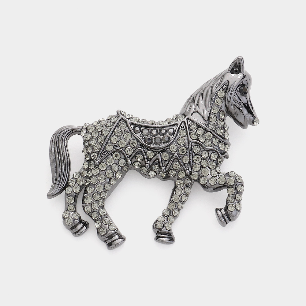 Rhinestone Paved Horse Pin Brooch