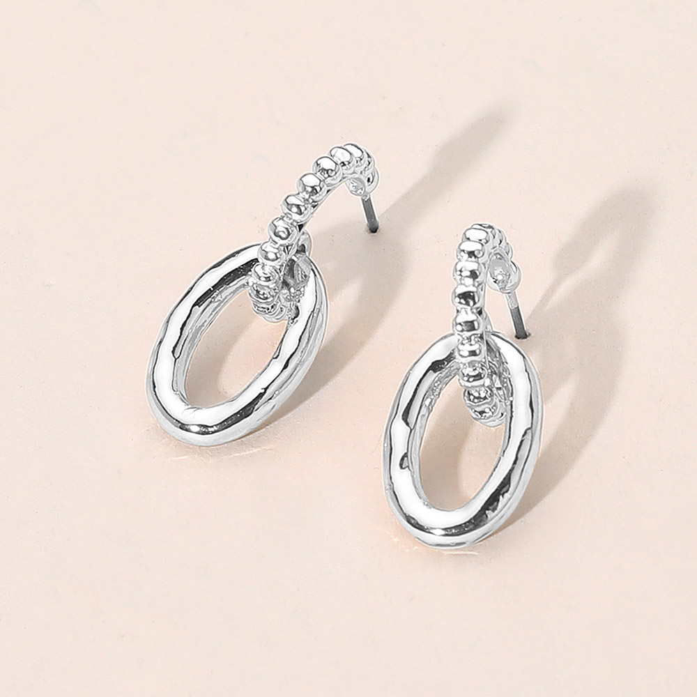 Make a statement with these eye-catching drop earrings that blend texture and shine in perfect harmony. Featuring beaded hoop details paired with sleek oval links, they dangle with just the right amount of movement to catch the light from every angle. The mixed metal finish adds dimension and versatility, making them equally at home with casual weekend vibes or dressed-up evening looks. Lightweight yet impactful, these beauties are your new go-to for adding personality to any outfit.